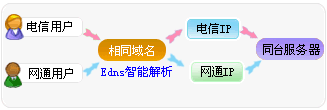 我们的EDNS 域名智能解析服务系统 就可以实现 域名的智能解析.用户可以配置好电信Ip地址和网通IP地址.例图如下: